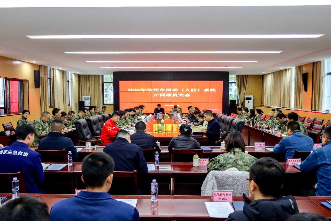 2026年达州市国动(人防)系统开训动员大会举行发表时间:2026-01-30 15:16 为深入贯彻习近平强军思想和新时代军事战略方针,加强国防动员和后备力量建设,巩固提高一体化国家战略体系和能力,锻造召之即来、来之能战、战之必胜的达州国动(人防)铁军,1月30日,2026年达州市国动(人防)系统开训动员大会举行。市国动委副主任、副市长汪有才出席并讲话。